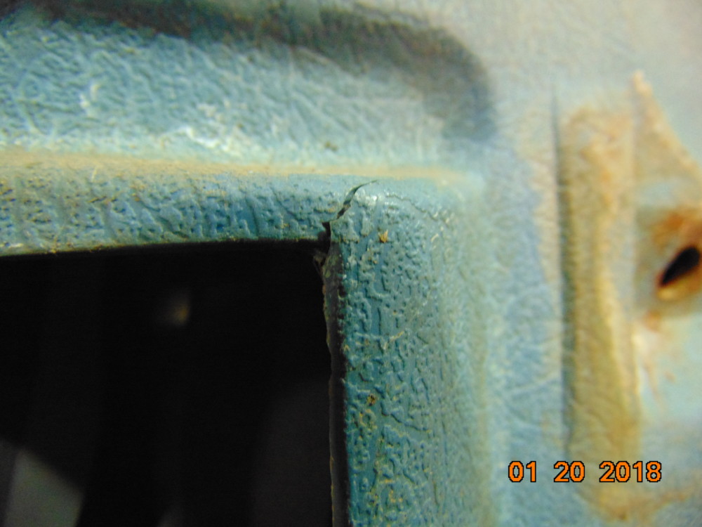 right side in blue. Does have 1 small crack in door handle opening. Fits 68-71 crew cab only.
