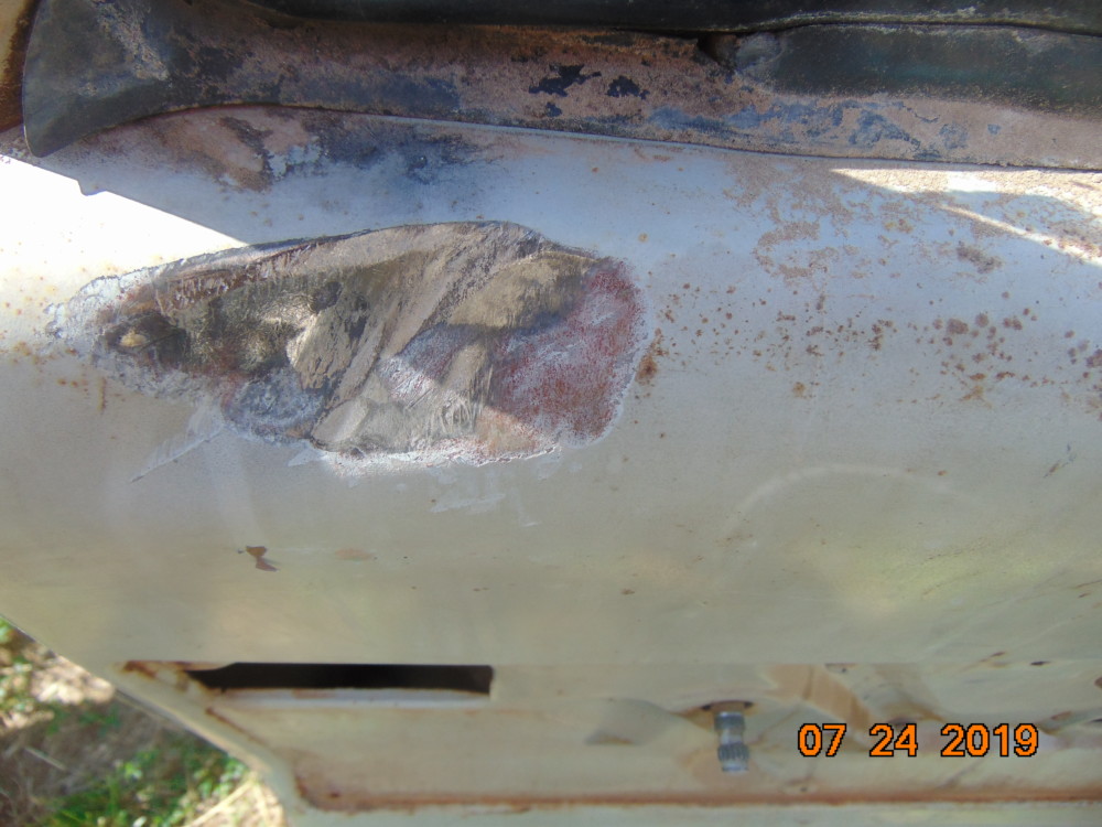 No cancer, but does have some surface rust. Does have a dent on the inside of the door just below the vent window.