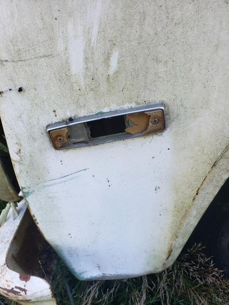 Very solid fender, but does have good size dent on the front corner. THIS IS NOT A PERFECT FENDER AND IS PRICED ACCORDINGLY