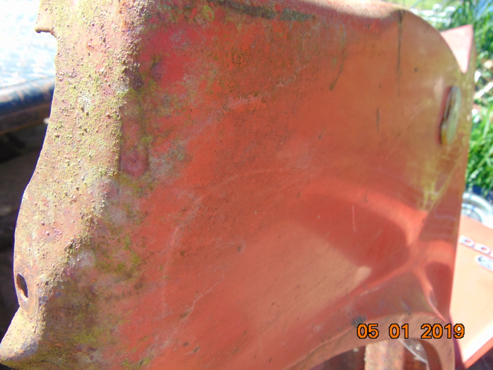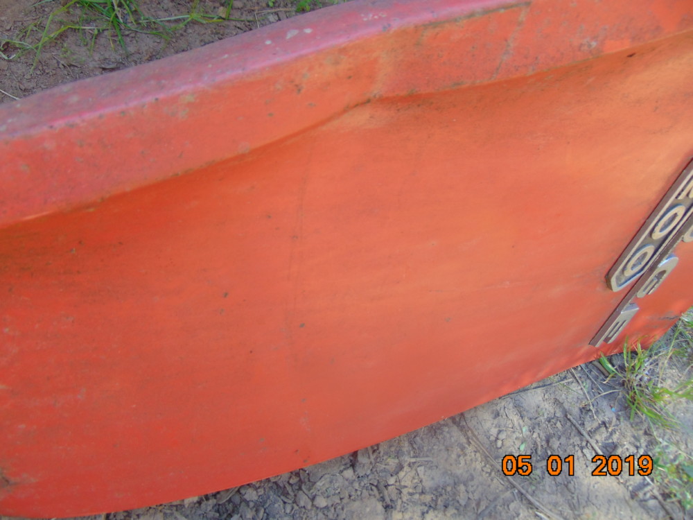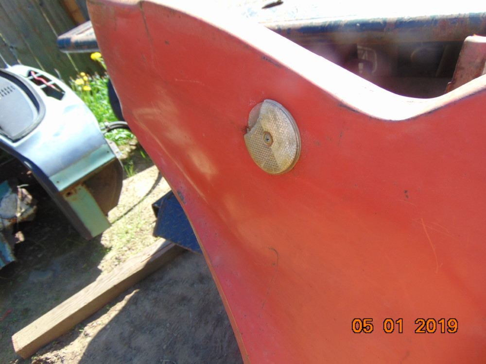 Does have a compression dent on the front area around the reflector. The front edge has been pushed back a hair creating this compression dent area. Easily repaired. No cancer.