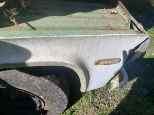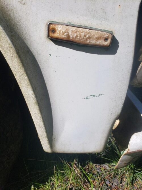 Does need a little repair. Does have surface rust on it now. This fender is covered with surface rust now. It was stored outdoors and so the picture does not depict the way it looks now.