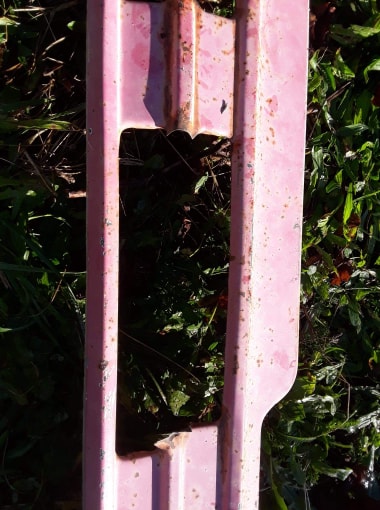 Some dings and dents. The pink one has had the 2 lower bars cut out.