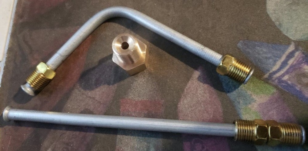 This is a brand new brake line that connects the brake line hose to the master cylinder . It allows the cab to flex without breaking the hard line. They come in 7/16 inch fittings. 59-66 only use 1, 67-68 uses 2 and 1 of the adaptors to change the line to 1/2 inch at the rear port on the master cylinder. Specify whether you want straight lines or 90 degree lines.